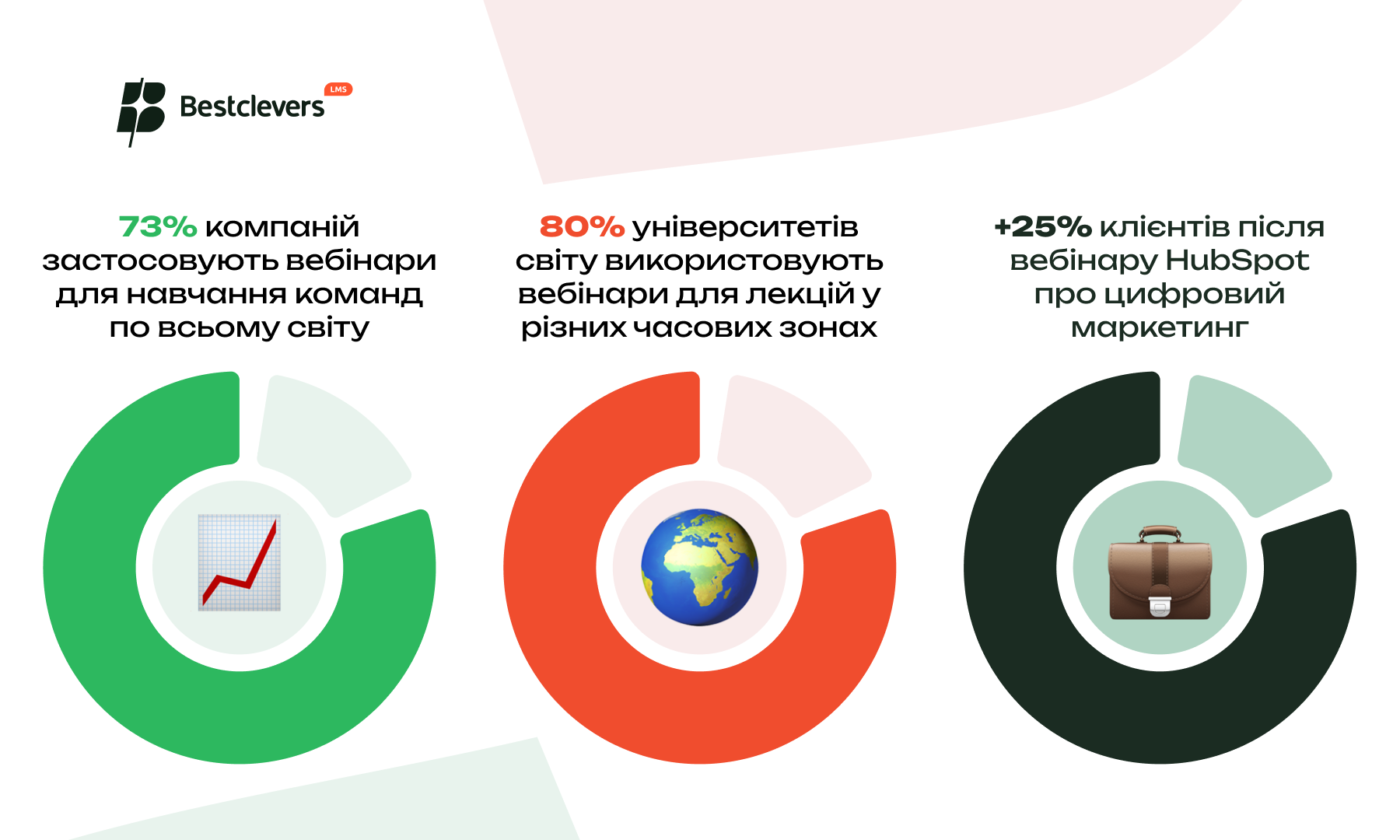 Bestclevers LMS — це платформа, яка вже зараз формує майбутнє онлайн-освіти в Україні та готується підкорити світ. Ми не просто інтегруємо функції вебінарів, ми створюємо новий стандарт.