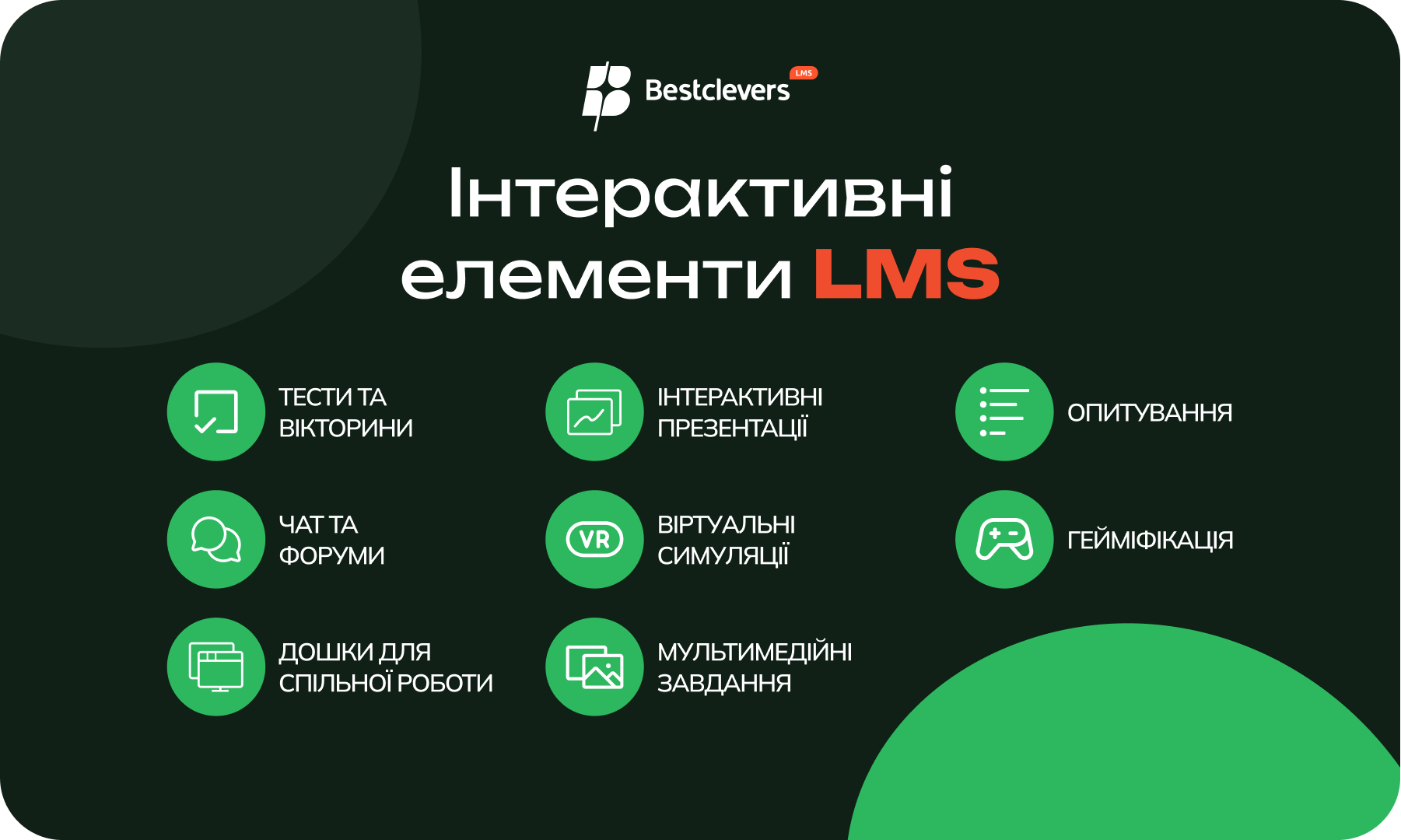 - Інтерактивність: тести, вікторини, симуляції, які допомагають засвоїти матеріал цікавіше та швидше.