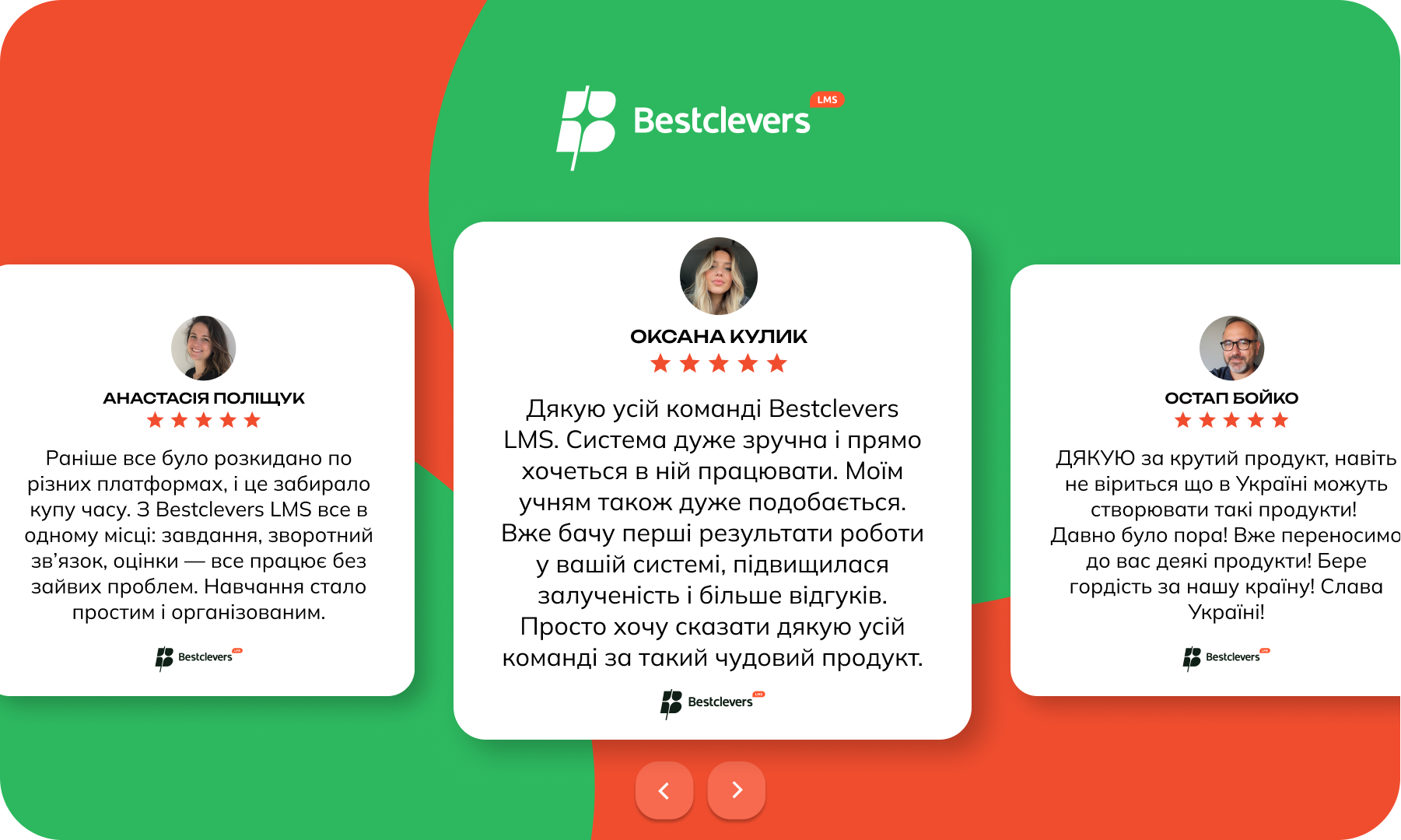 Bestclevers LMS створена, щоб зробити процес здобуття освіти зручним, ефективним і доступним для кожного.