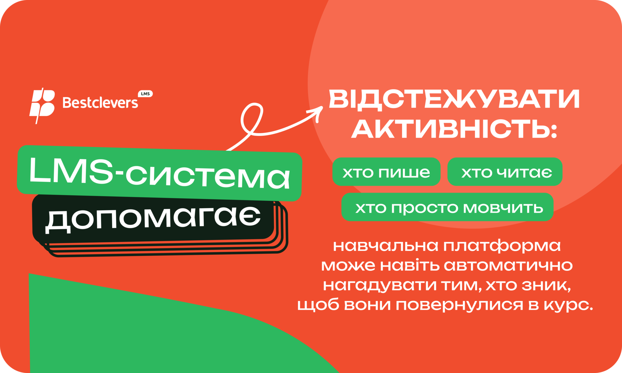 На навчальній платформі всі ці штуки можна налаштувати автоматично. LMS-система допомагає тримати активність: відправляє нагадування, показує, хто не заходив давно, допомагає зробити спільноту реально живою.