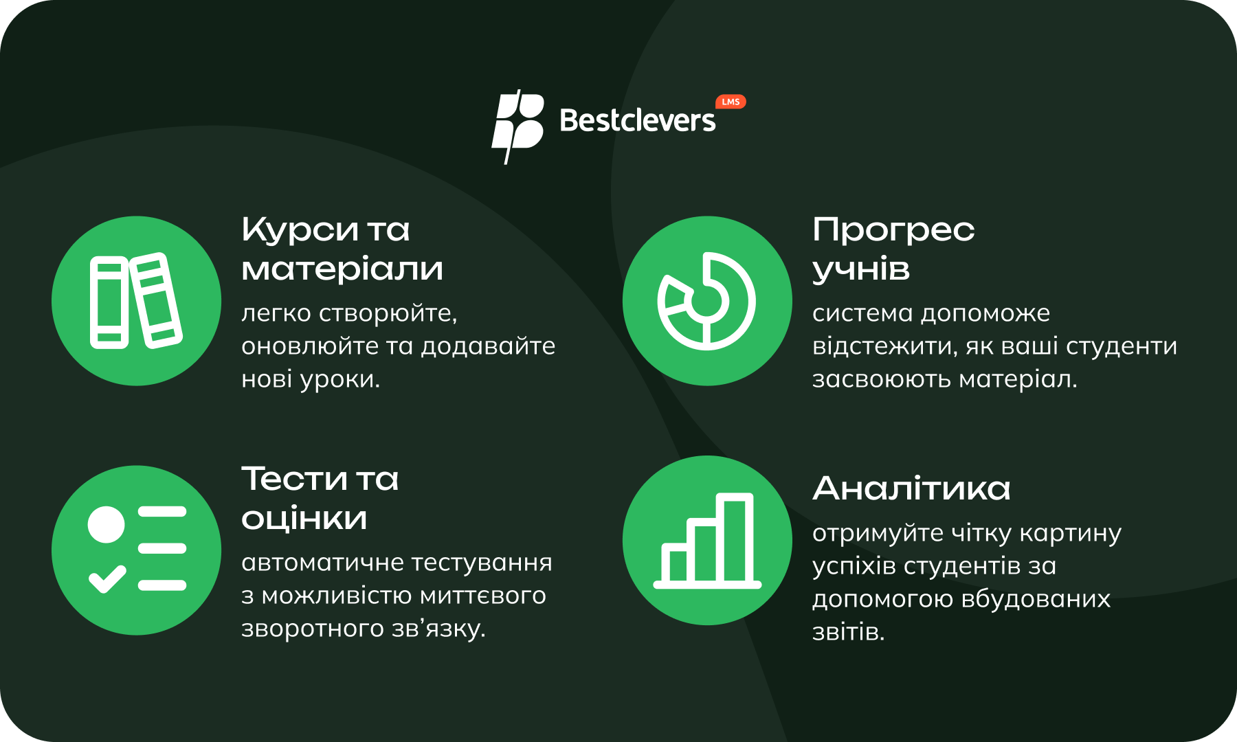 LMS платформи стали незамінними інструментами для онлайн-навчання та репетиторства. Щоб зробити правильний вибір, потрібно звертати увагу на функціональність, гнучкість і цінові можливості платформи. Bestclevers LMS є надійним рішенням для тих, хто хоче поєднати зручність із ефективністю та масштабувати свій освітній бізнес.